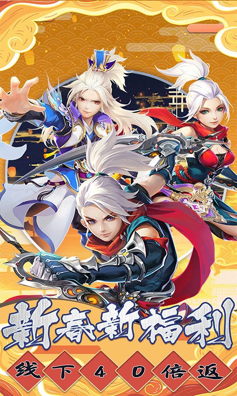 《六界仙尊(独家40倍返)》三职业玩法,解锁新角色战斗力直接暴涨2倍。全新福利来袭,线下每天首笔充值返真充卡,最高返40倍。升级还送大量元宝,还有神器免费领取。签到即送炫酷称号,时装,极品神器全部免费送,每天登录领豪礼。