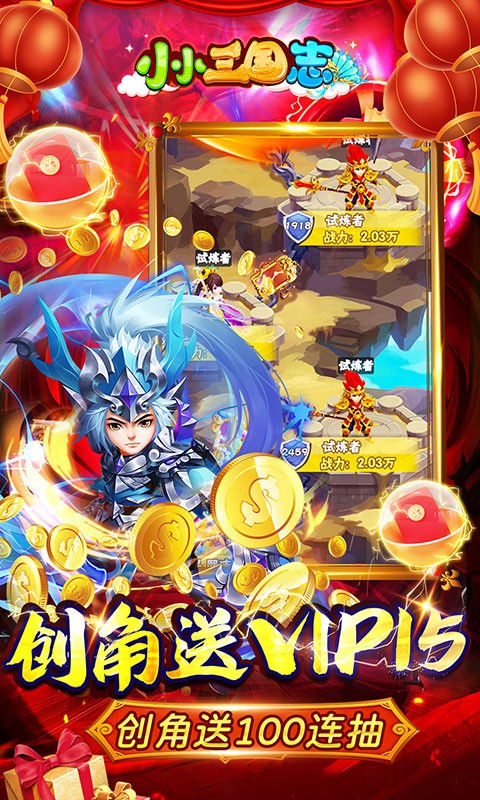 《 小小三国志(送连抽返钻)》是一款纯正三国策略卡牌手游,挂机升级打BOSS,24小时战不停!Q萌可爱的三国武将,诙谐幽默的NPC,还原真实历史的主线剧情,让各位少年主公在轻松搞笑的画风中体验到三国时期群雄争霸的战斗快感!貂蝉、吕布、甄姬…众多历史名将正在等待您的招募,赶紧来玩吧!