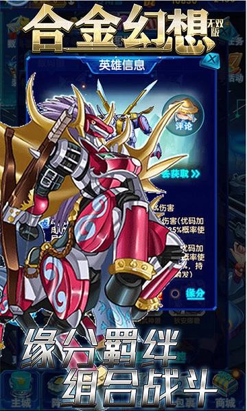 《合金幻想无双版》是一款数码宝贝世界背景的卡牌养成手游,经典剧情完美重现,收集癖不容错过的各系萌宠收集,整体画面清新整洁;简单便捷的操作体验体现的是远超一般的流畅操作,畅享即时PK自由无限。