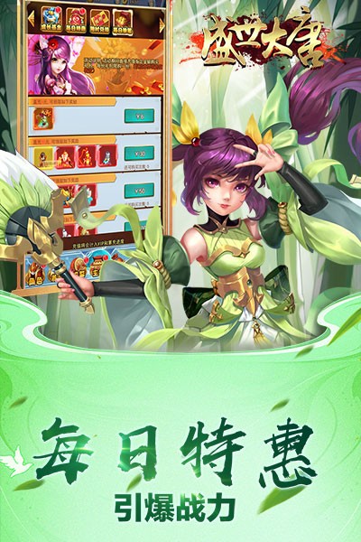 《盛世大唐》是一款以西游为背景打造的回合类挂机手游。画面有趣,玩法升级!游戏以Q版神仙形象和简单的操作,酷炫的坐骑与翅膀,还有唯美的外观系统。其他还拥有神兵、法宝、宠物等各种轻松又强大的功能系统为大家再次描绘一个不一样的西游!龙腾于天,长吟天地,谁是王者!