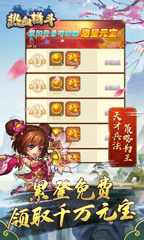 《热血格斗(GM打金神器)》是一款经典三国卡牌策略游戏!新版内置GM打金神器,副本BOSS均可获取GM币,免费刷充值和礼包!升级一共可领一万元真充现金卡,SVIP、GM全部免费送!庞大的卡牌对战系统,随意的武将组合设定,极具策略玩法和排兵布阵搭配阵型考验,让游戏拥有无限的战斗策略和趣味相结合,带你玩转不一样的三国。