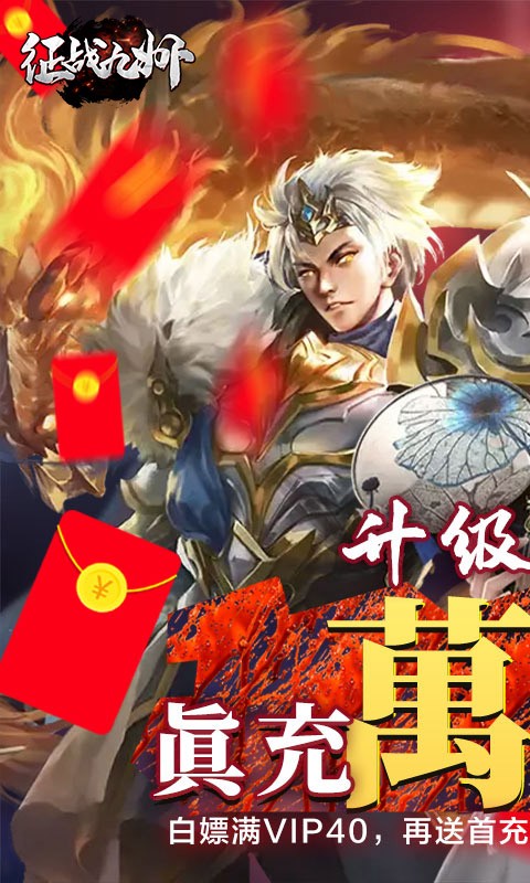《征战九州(真充红包版)》是一款复古怀旧的三国挂机游戏,陪你燃起曾经街机争霸的激情!创角即送首充现金卡和红色武将·关羽!升级领万元红包,一共可免费领16168元真充红包,还可白嫖满级VIP!细致精美的画面全新升级,传统闯关玩法满是回忆。炫酷技能,合体神技,横扫千军势不可挡!超多三国名将等你召唤,无敌神将震撼来袭,开启你的争霸之路!