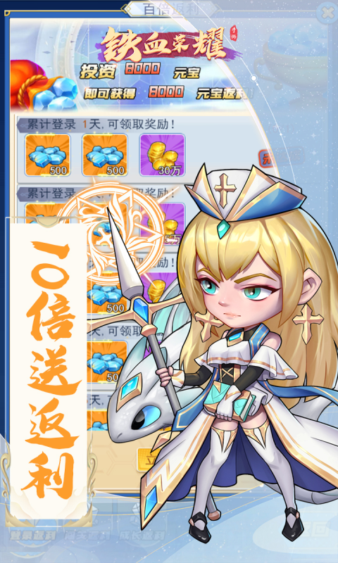 休闲娱乐挂个机,壕礼送不停,这里的极品神兵、海量元宝、绝版仙翼、奢华时装统统免费领,升级还送VIP,!震撼高福利让平民玩家从此翻身做大佬,让你在单人竞技、多元PK、跨服对决、挑战BOSS、奇遇副本等超多玩法中释放激情。