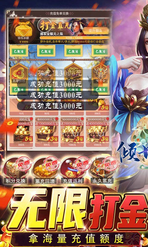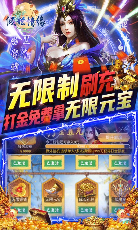 《倾世情缘(GM无限打金)》是一款特效华丽建模非常精致的挂机游戏。开局暴揍策划拿打金额度,抢海量充值金额!野外挂机,击杀BOSS均可获得打金额度,纯无限超爽打金版本!还可激活首充和累充活动!从培养自己的鲲开始就踏上了这段和上古异兽为伍,洪荒猛兽环绕的有血有肉会呼吸的异兽大陆!带您体验创号即毕业的超爽体验!
