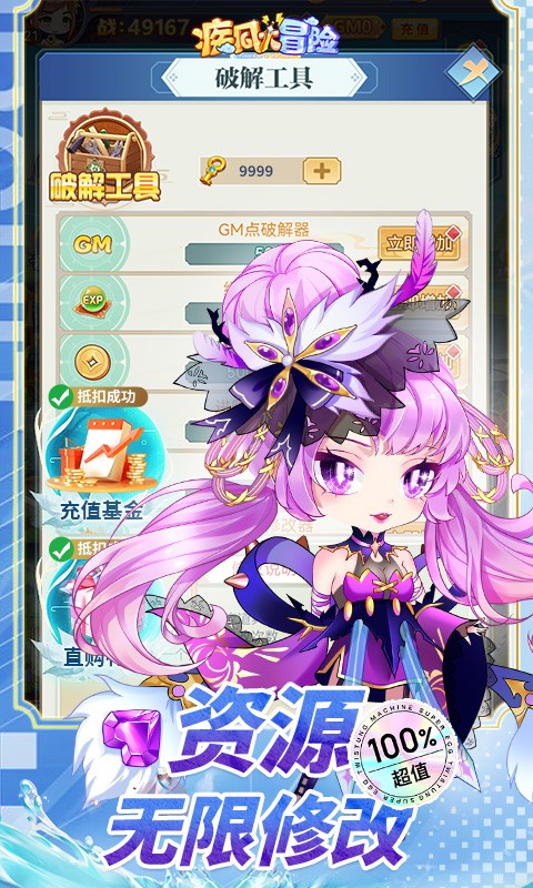 《疾风大冒险》是一款Q版国风题材的塔防 回合制游戏。你将化身主公,带领女英雄们征战天下!游戏上线开局即赠送代充券,充值,特权,礼包全额抵扣,免单领取。游戏保留了经典塔防游戏的精髓,烧脑策略秀操作,在传统塔防的基础上,结合了策略、培养、战斗,每个武将也都各具特色。趣味的玩法,休闲的画风,简单的操作,原创“满屏技能释放”,带来燃尽十足的战斗快感,让战斗在你的指尖生动重现。