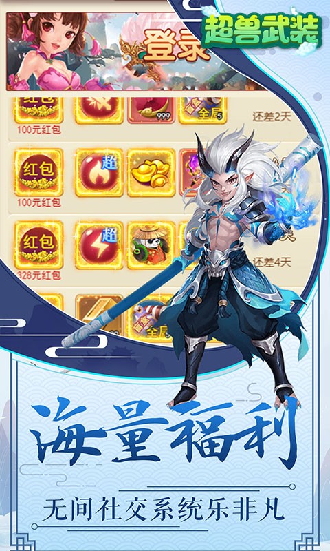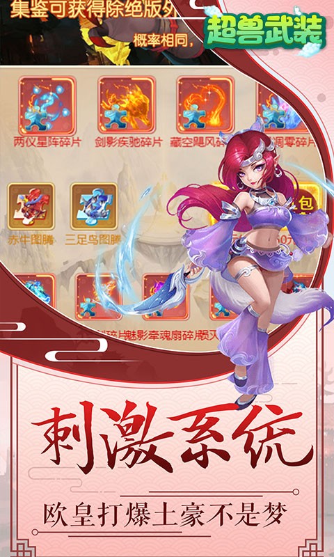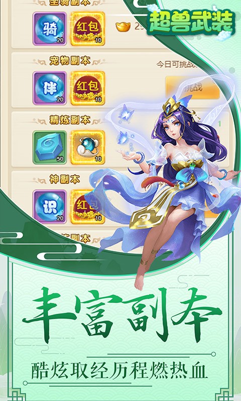 《超兽武装(无限红包版)》是一款Q版回合制放置游戏。开局就送SSSSR最强宠物战力组合、VIP20、648元红包、188888仙玉、666万元宝和1亿银两!精美2D、Q版人物设计,搭配传统神话故事剧情,实力打造精品回合制经典!酷炫坐骑共同潇洒三界,独有万千道具自由回收,多样经典回合玩法无穷乐趣!