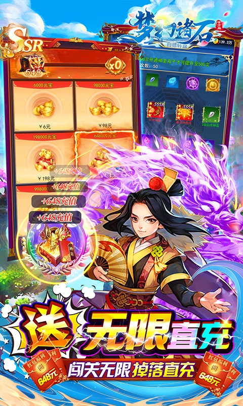 《梦幻诸石官方版》是一款仙侠风格的高自由度的放置游戏,开局就送满级VIP,满阶法宝照妖镜 真男人无敌5秒钟手速狂撸648元充值,首充、累充统统激活;还有直充工具,闯关、副本都掉落直充币,元宝灵玉统统都有;还有BUG转盘,抽到你爽;登陆七天SR?SSR幻化样样都有任你领,各路仙侠同台竞技!加入帮派与至交好友一览仙侠,战斗路上不再孤单!