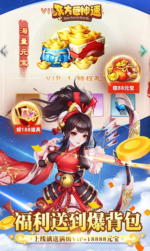 《东方巨神速-送满V领真充》是一款挂机养成游戏,上线就送满豪华VIP,完成任务还能升级VIP等级,以仙侠世界为背景,在游戏中你可以招募不同阵营的灵兽,来组建只属于你的队伍。打造最强红装,神装,通关boss、搭配各种组合,羁绊等,游戏中需要合理部署阵容搭配,让队伍发挥最强大的实力,带领队伍走向最终的胜利!还在等待什么,快来培养专属于你的灵兽吧!