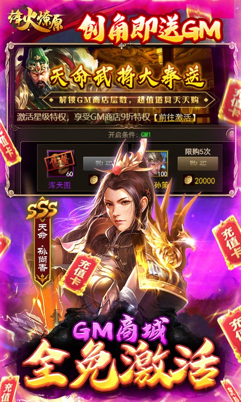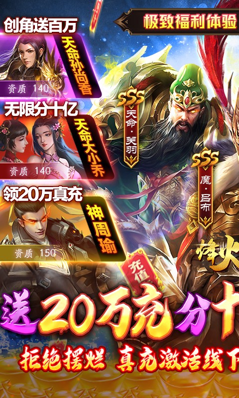 登录就送20万真充,再每天免费瓜分10亿元宝,上线送GM1,200万元宝,1亿铜钱开局,本游戏您可扮演主公在群雄并起的乱世之中建立心中的梦幻家园或者不破坚城,招揽千秋传奇人物或者万载唾骂的罪人,浪迹天涯逍遥世界或者闭门造车自娱自乐,疯狂肆掠以战养战或者纵横联合不畏强敌,这些都尽由你指尖决定。