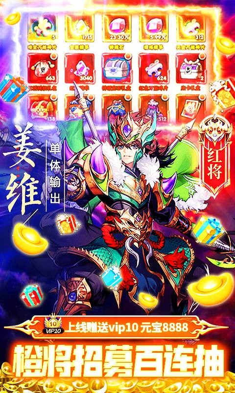 《神奇三国》是一款休闲挂机的Q版仙侠卡牌养成手游。匠心独具的精美画风、极致个性的神将培养、精彩多元的副本玩法,烧脑策略组团打BOSS,攻城略地加冕称王。游戏上线就送vip10、元宝*8888,橙将招募免费百连抽!每日签到每日在线大量送充值卡,直升VIP!领取礼包码可直接获得神将二郎真君,还有任选紫色坐骑,神装四件套等豪华奖励!新服7天登陆,神将、坐骑高级道具通通免费送!快来一起畅享战斗吧~