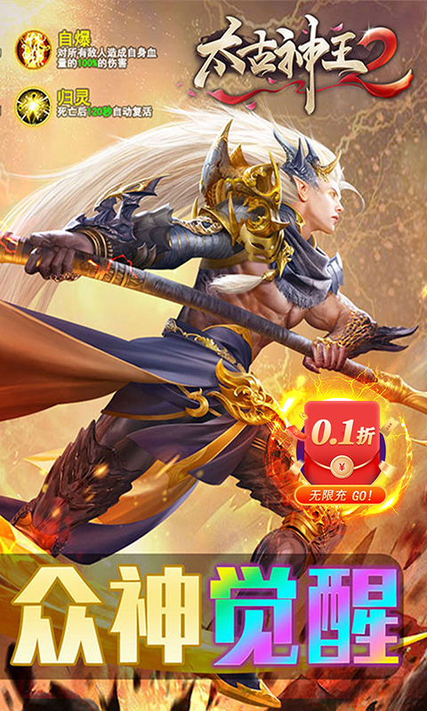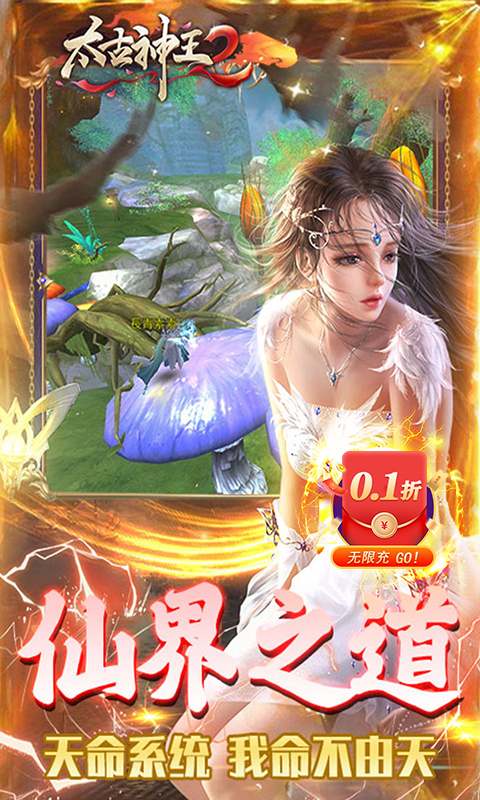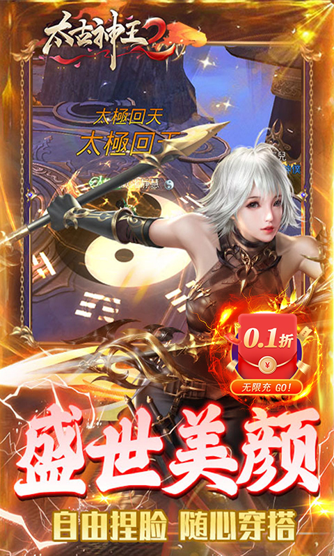 《太古神王2---0.1折》是一款大型3D仙侠MMO手游,2023全新制作,恢弘场景,霸气坐骑,酷炫技能,全自由立体飞行,3D酷炫全新体验!超多极致炫酷幻化,极致呈现激情战斗场面,延续经典的爽文真玄幻剧情,快来开启你的修仙之路! 这款游戏无论画质还是玩法都是一绝,玩过的都知道,现如今精心推出了一款0.1折版本,648礼包真的只要6.48米,减价不减量,商城物价不变哦