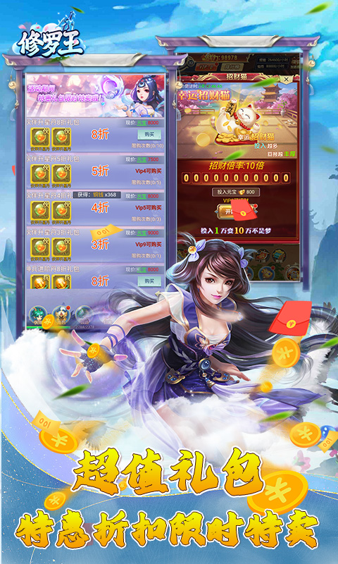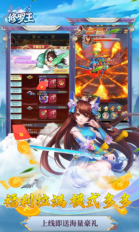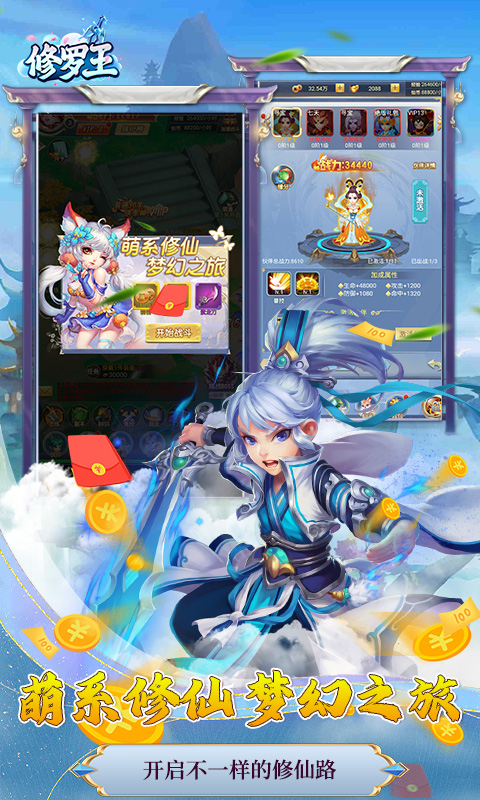 《修罗王(0.1折修仙)》是一款Q版仙侠风手游,在游戏中玩家可以尽情的体验打怪升级的快感,不仅有伙伴陪伴在您左右,提升您的战斗力,让您在游戏中体验到酣畅淋漓的战斗,还有仙宠同您一起作战。该游戏创新无限制浮空玩法、御剑飞行,瞬间跨越山水之间,不仅如此,更有华丽时装、炫酷特效呈现爆燃仙界大战。漫漫仙途,同伴而行,快来解锁不一样的仙侠世界吧!