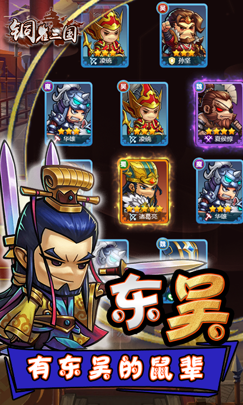 《铜雀三国》是一款三国题材卡牌手游,精美的Q版萌趣画风,搭配原汁原味的三国故事剧情,带你领略一个不一样的乱世三国!在《铜雀三国》中,玩家通过战斗收集不同的将领卡牌,并通过组合和搭配来构建自己的战斗阵容。5大职业,5大阵容的多位武将都有自己独特的技能和属性,玩家需要不断地思考和调整自己的战术,以应对各种战斗情况,将历史上的真实人物与游戏相结合,让你通过指尖的畅意操作体验乱世天下当英雄的霸气。