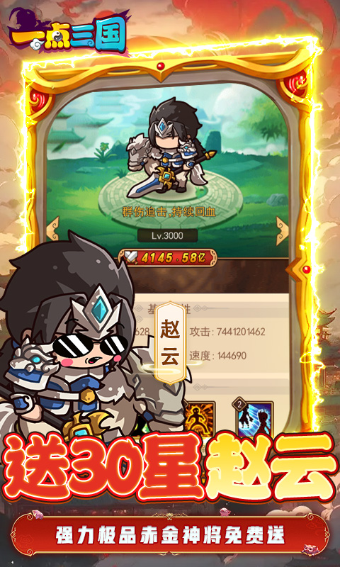 超人气策略卡牌休闲手游《一点三国》来啦!千万玩家共同期待,三国题材玩法完全创新,上线免费送现金特权 ,余额抵扣充值,打金BOSS免费刷充,充值、现金卡刷到手软,天天送648元充值卡,开局直接起飞,再送赤金神将赵云,超高收益,身价暴涨~