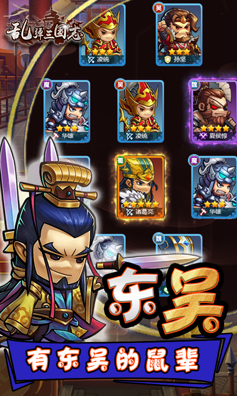 《乱弹三国志》是一款三国题材卡牌手游,精美的Q版萌趣画风,搭配原汁原味的三国故事剧情,带你领略一个不一样的乱世三国!在《乱弹三国志》中,玩家通过战斗收集不同的将领卡牌,并通过组合和搭配来构建自己的战斗阵容。5大职业,5大阵容的多位武将都有自己独特的技能和属性,玩家需要不断地思考和调整自己的战术,以应对各种战斗情况,将历史上的真实人物与游戏相结合,让你通过指尖的畅意操作体验乱世天下当英雄的霸气。