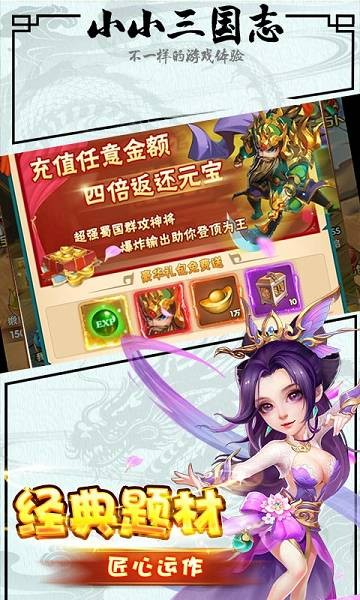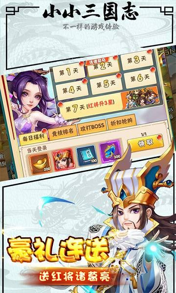 《小小三国志》是一款三国题材的策略卡牌游戏,游戏采用淡水粉色调的古朴背景和Q版的人物角色造型。玩家不仅可以招募三国名将共同征战沙场,还可以烧脑策略组团打BOSS,攻城略地加冕称王,尽享三国争霸快感!
