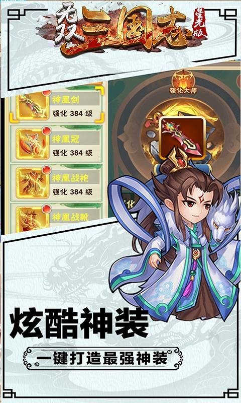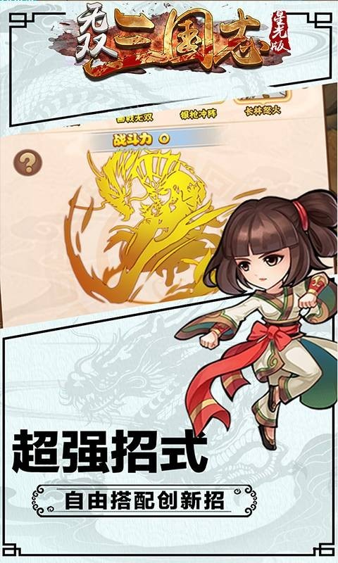 《无双三国志星光版》是一款以三国乱世为背景打造的回合类挂机手游,游戏以Q版武将形象和简单的操作为大家再次描绘一个不一样的三国。各位玩家在游戏中可以使用各个著名的三国人物,来组建自己的队伍。玩法上不仅有精心设计的地图关卡,过关斩将的经典战役,更有丰富的PVP玩法和实时的玩家对战,演绎各自心中最喜欢的三国战场。武将更可以通过升级、培养、超进阶等方法,自由打造最强武将,随心搭配阵容。各种组合千变万化,众多强大的三国武将等你来招募,率领你的军队击败众多对手,实现你的雄心壮志!