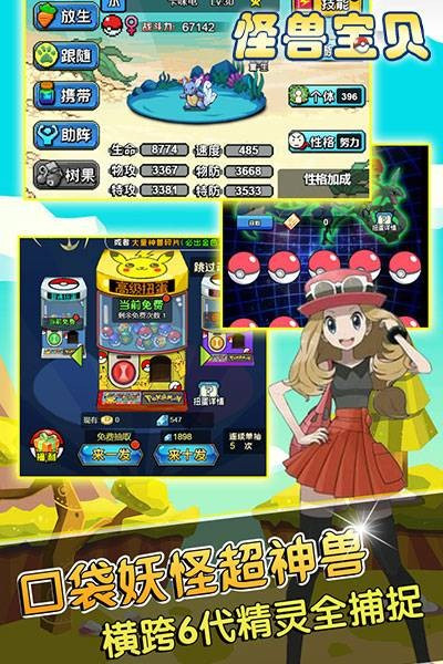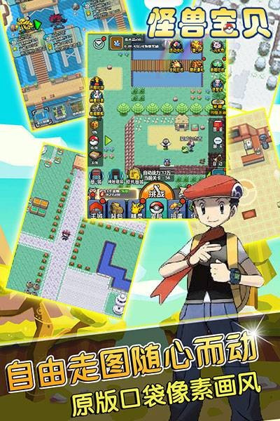 《怪兽宝贝》是由经典动漫改编的一款掌机策略手游。游戏高度还原了经典的掌机玩法,且新增了自动寻路、离线收益的挂机元还采用当前主流的深度养成玩法,让玩家打造自己的DIY精灵军团。游戏收集超过300多种精灵,且能实现进化,再进化,超进化,真实还原动漫感受,同时还收录了部分出现的超级神兽,真实还原掌机体验。竞技、地底、核心副本玩法层层深入,任务、活动、PK、BOSS,好友、和公会等交互性玩法引人入胜。在游戏中,精灵进化、精灵技能、努力值、属性克制等多维属性让你的精灵脱颖而出,皮卡丘、超梦、喷火龙等经典再现,数百款精灵完美还原。二十年经典巨制,《怪兽宝贝》等你来体验。口号:掌机情怀,从口袋开始!