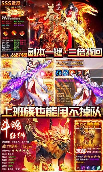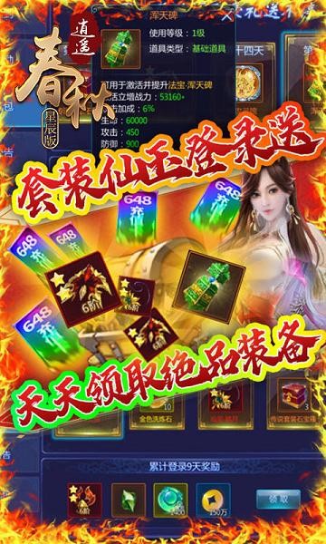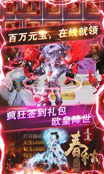 上线送满v,送88888元宝、送充值卡《逍遥春秋星辰版送充值卡》是一款以畅快战斗为核心的RPG仙魔手游,游戏以细致的地图场景、精致的人物角色基础,全面构筑起史诗般东方魔幻世界。高清画质 ,精美模型;多样副本,奖励丰厚;神兽降临 ,法宝问世;跨服玩,称霸大陆!全民参战冲击你的血液,开放战斗满足你的激情!