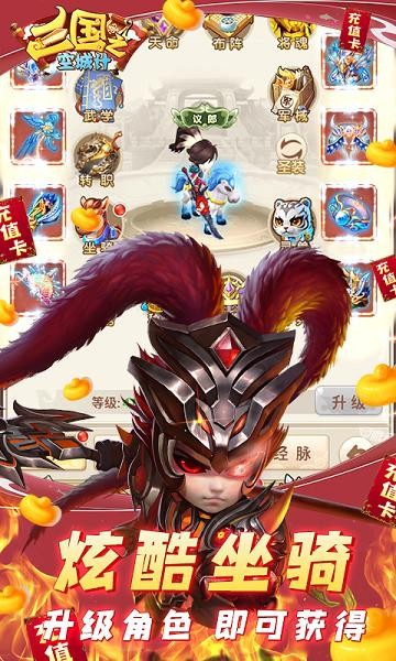 三国游戏创新制作,回合制集大成之作!回到东汉末年当王爷,战曹操,降典韦!桃园结义,豪情义气冲云天,歃血为盟桃花园!煮酒论英雄,一震之威雷电威,天下豪强谁称王?官渡之战一统中原,赤壁之战三分天下!神将归位:五虎上将PK五子良将!谁是最终神将?铜雀春深,红颜归心,貂蝉、孙尚香、大小乔、蔡文姬等你来情定三生!