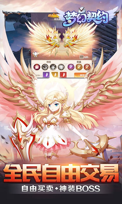 热血冒险RPG手游《梦幻契约》神秘来袭!登录免费送VIP,特邀专属礼包,双倍钻石返利,一次满足玩家所有福利需求,还有全民跨服自由交易,玩家自由买卖,量身打造离线挂机功能,全新大型组队副本来袭,全新场景,全新怪物,全新丰厚奖励集结!3V3新增个人匹配机制,让你自由在1vN or 3v3的乐趣中切换,妈妈再也不用担心我找不到战队收了。奇幻大陆新增黄昏之都,大量高级魔物聚集,等待勇者前往冒险。700级挂机地图随心探索,深入秘境,挑战精英BOSS,收集传说套装!超强角色极限转职玩法,让你自由进阶,创造全新职业生涯。
