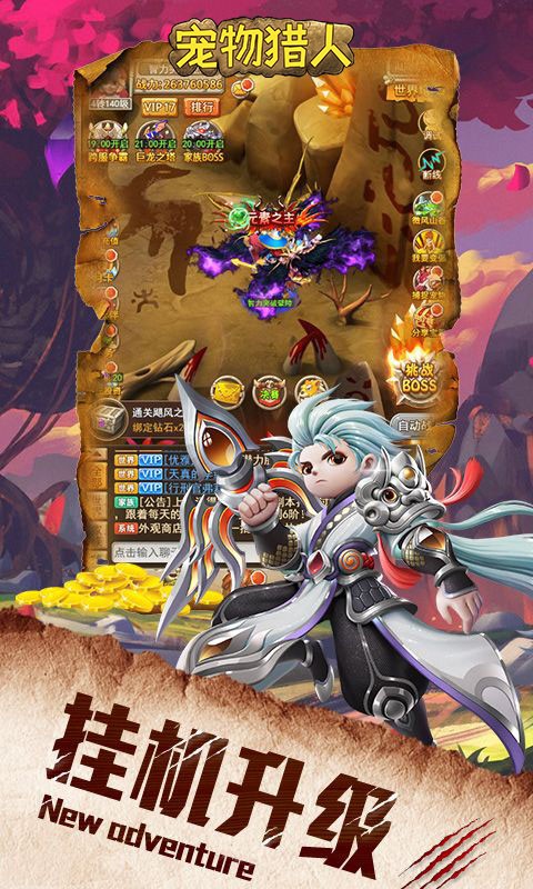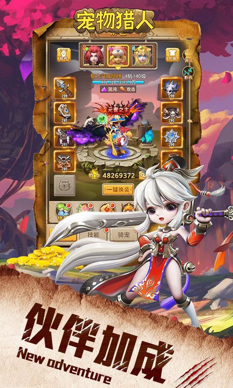 《宠物猎人(签到领真充)》是一款倾力打造的回合制Q版游戏。游戏中玩家将扮演一名初出茅庐的勇者,在一片被战争摧毁后的荒芜世界中不断探索。探索的过程中,玩家可以招募各种强力乖萌的宠物和伙伴,一起踏上未知而精彩的冒险旅程。生机勃勃又蕴含着危险,将给玩家带来前所未有的奇幻体验。