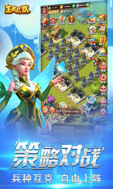 《王者战歌》是款创意合成策略类游戏, 操作简单易上手,多达数十种的建筑和兵种等待玩家逐步解锁,并结合了沙盘地图,兼具趣味性和耐玩性。