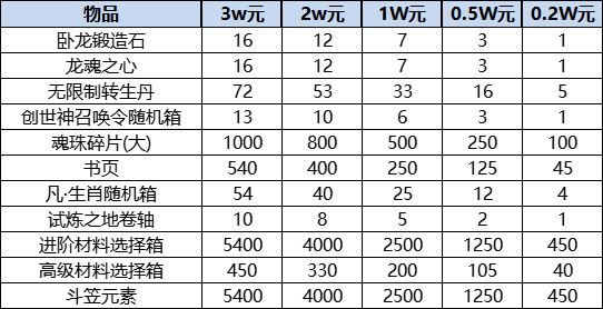 3、低于1W元档次,20种选4个道具,大于(包括等于)1W档次20选6个道具