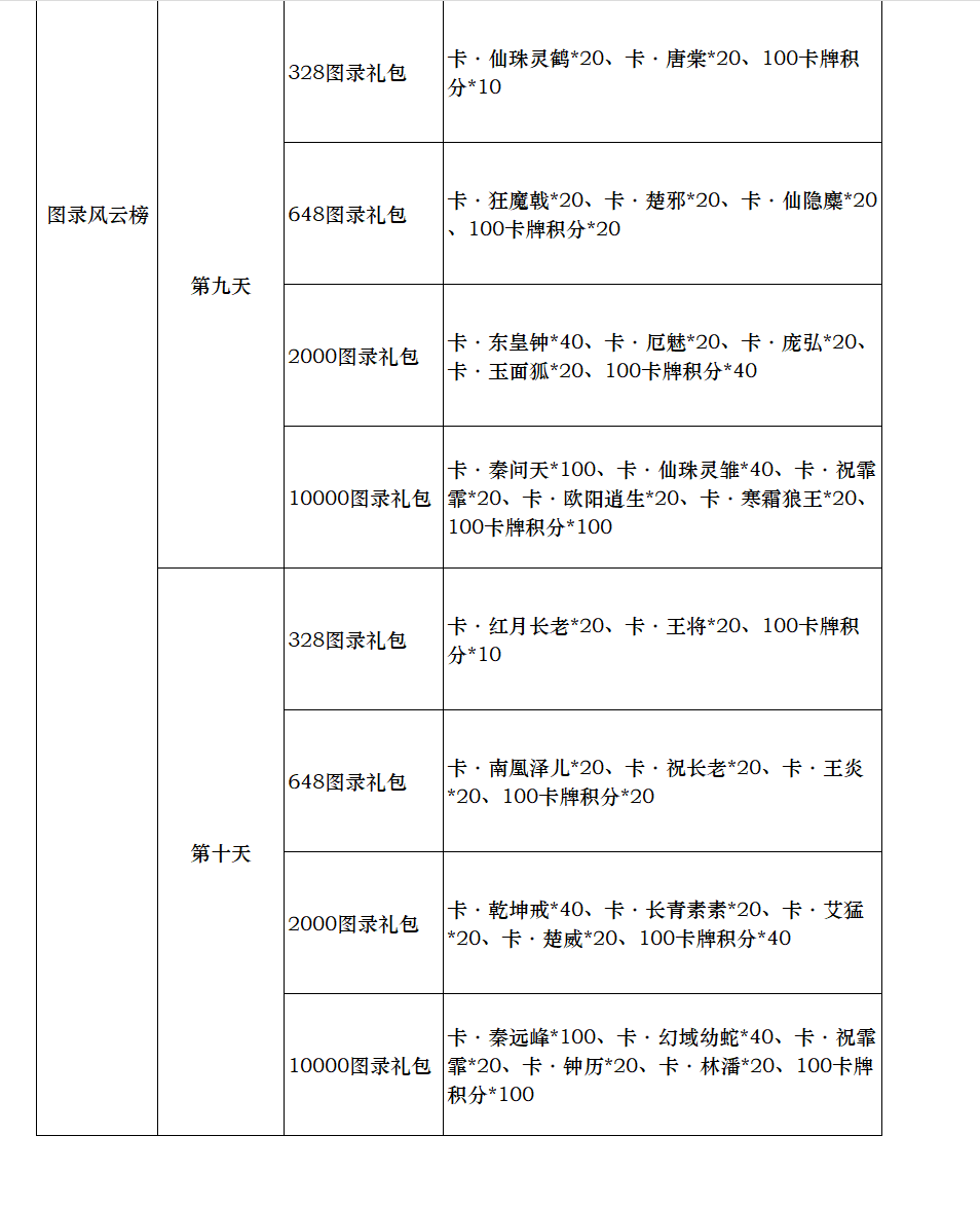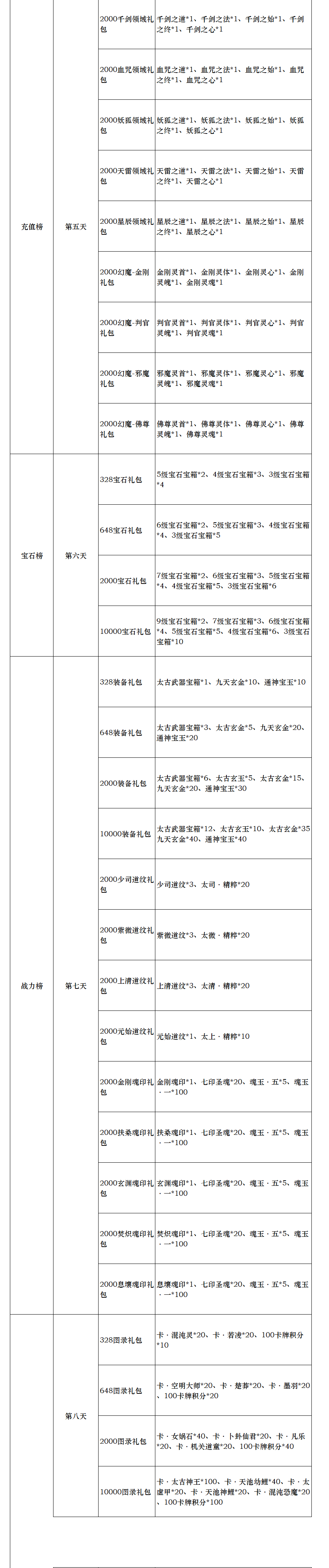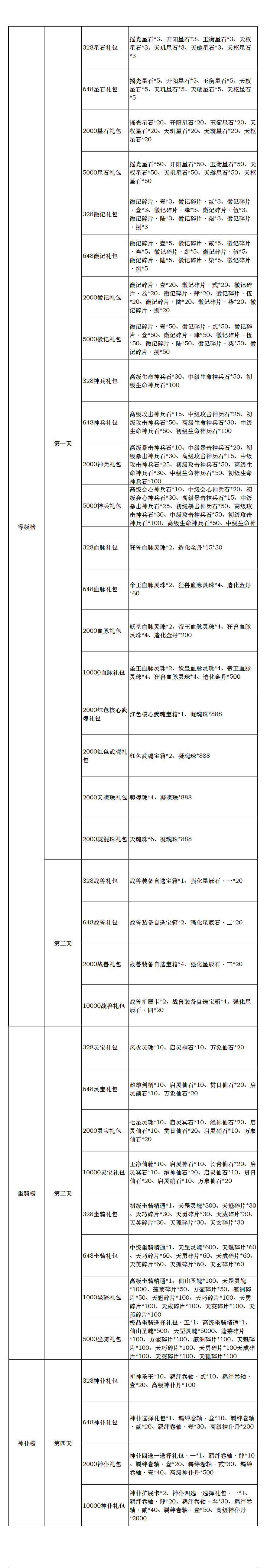 新区限时冲榜礼包(单日可重复获得,自动发放,邮件领取)